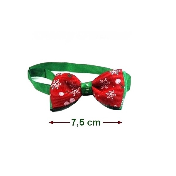 Die schicke Weihnachtsschleife ist 7,5 cm breit, 4,0 cm hoch, und sieht an kleinen Hunden einfach ganz entzückend aus.