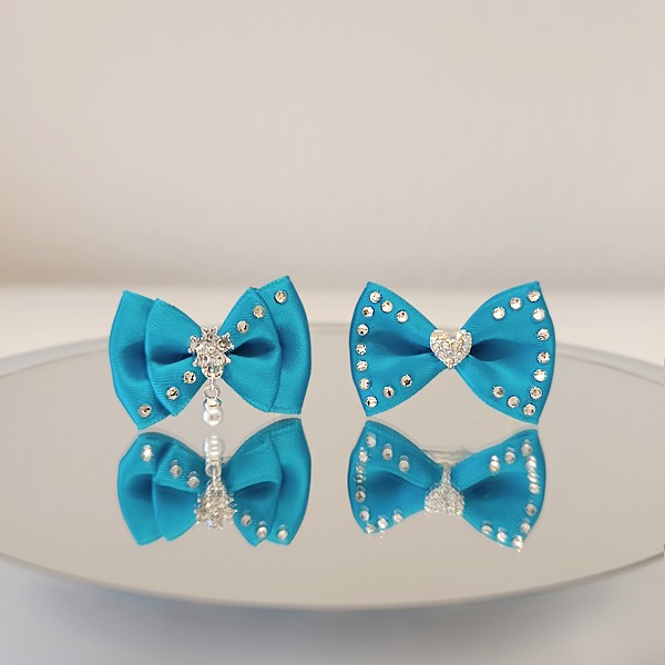 Diese Hundeschleifen sind ca. 3,5 cm breit und auf einer kleinen Kunststoffspange befestigt. Verziert sind diese Schleifen mit einem schönen Strassanhänger und einem entzückenden Stassherzchen. Sicherheitshinweise : Diese Hundeschleifen sind als Mode - Accessoires gedacht und kein Spielzeug. Lassen Sie Ihr Tier diese Haarschleifen nur unter Beaufsichtigung tragen. Achten Sie darauf dass Ihr Hund diese Haarschleifen nicht zerbeißt - es besteht Verletzungs / Erstickungsgefahr durch verschluckbare Kleinteile. Herstellerinformation : Heidi´s Schleifchenwelt Heidi Barner Johannettentaler Str.4 32756 Detmold Deutschland Tel : +49 231 305100 E-Mail : shop@heidis-schleifchenwelt.de